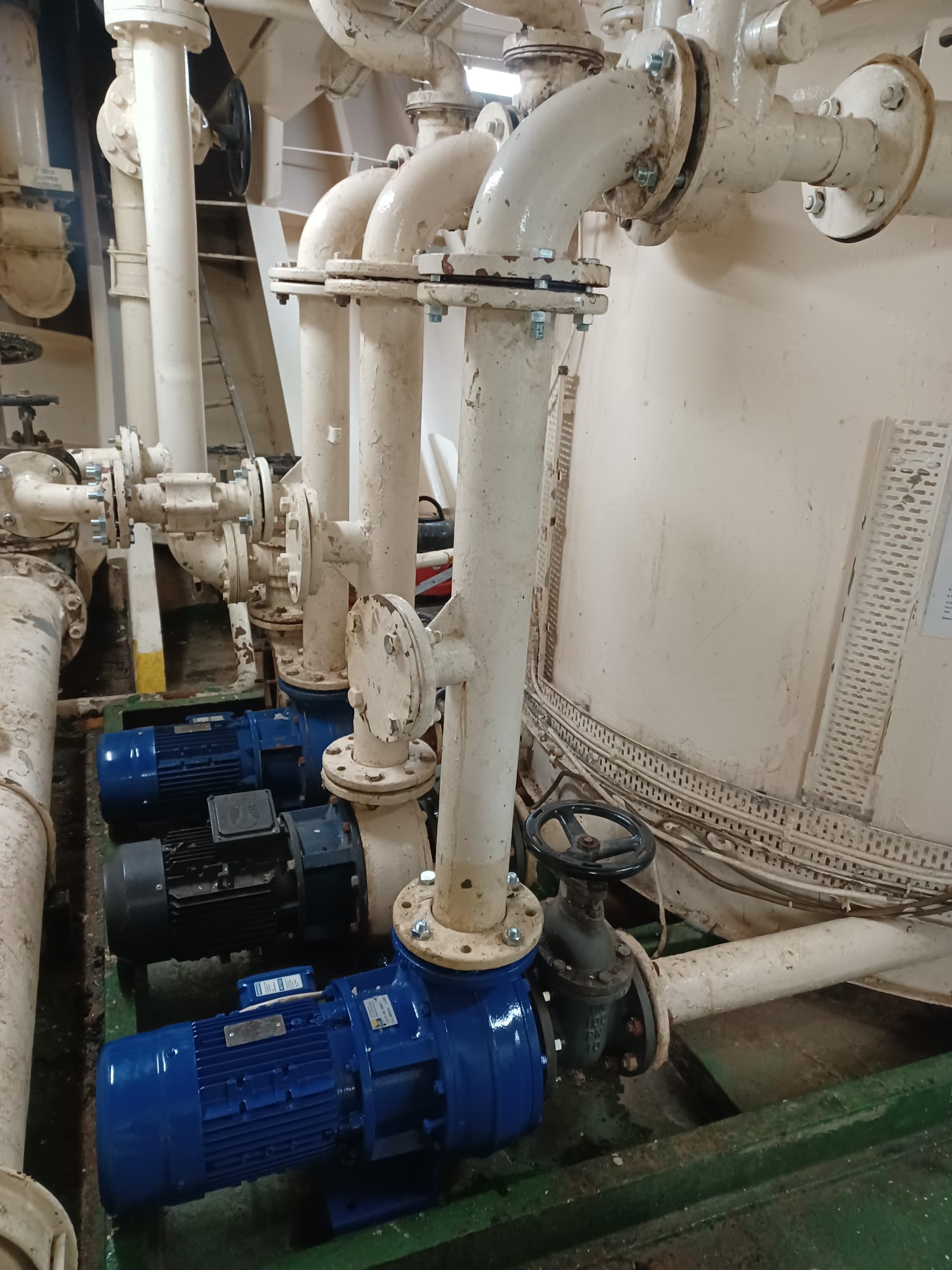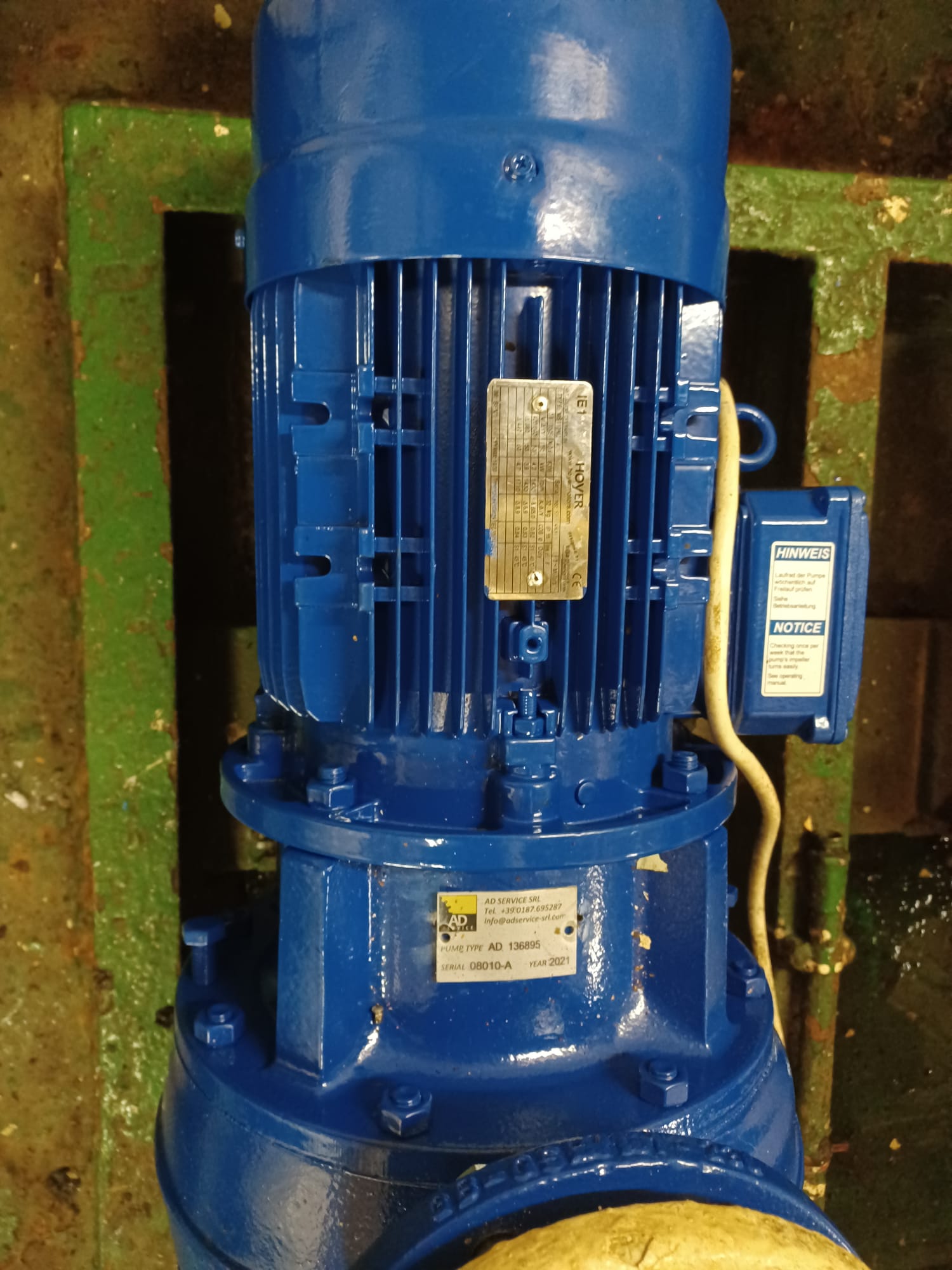 Revisione Motore elettrico per impianto EVAC . Lavoro eseguito sulla Tenuta meccanica, riavvolgimento parti elettriche, sostituzione asse e cuscinetti con giranda telescopica.