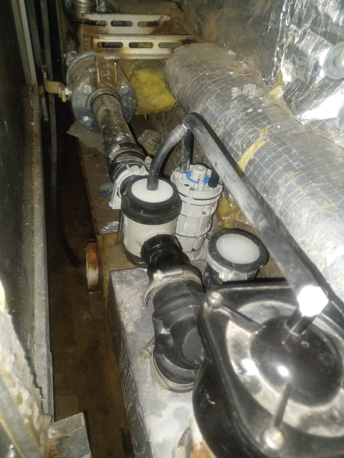 Installazione completa cassa di raccolta acque grigie con pompe di svuotamento automatiche e semiautomatiche.
